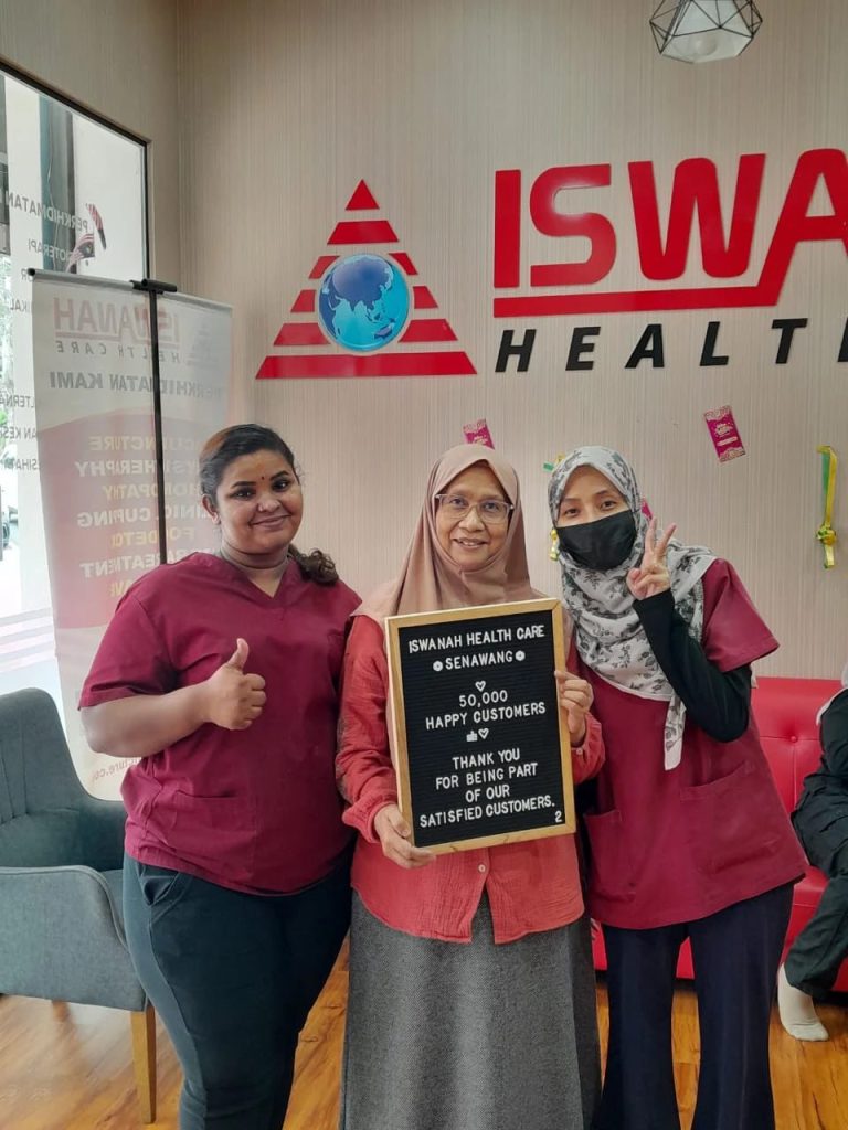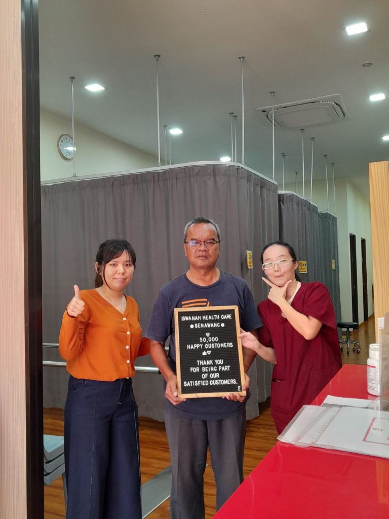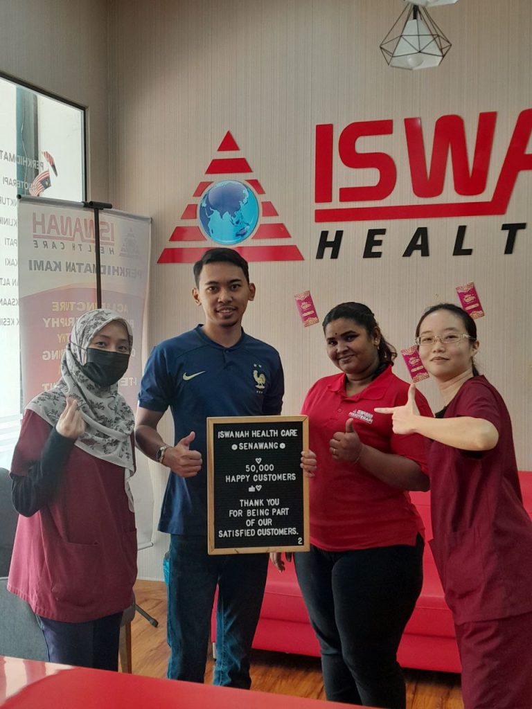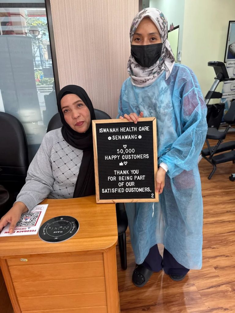 Both the treatment that I get from this clinic gives a lot of imprvement to my knee pain, so far 75% improvement. Hopefully by the end of this package my knees will be normal again and I can pray as usual. Well done and I will recomend to my friends this Iswanah Health Care. Thank you